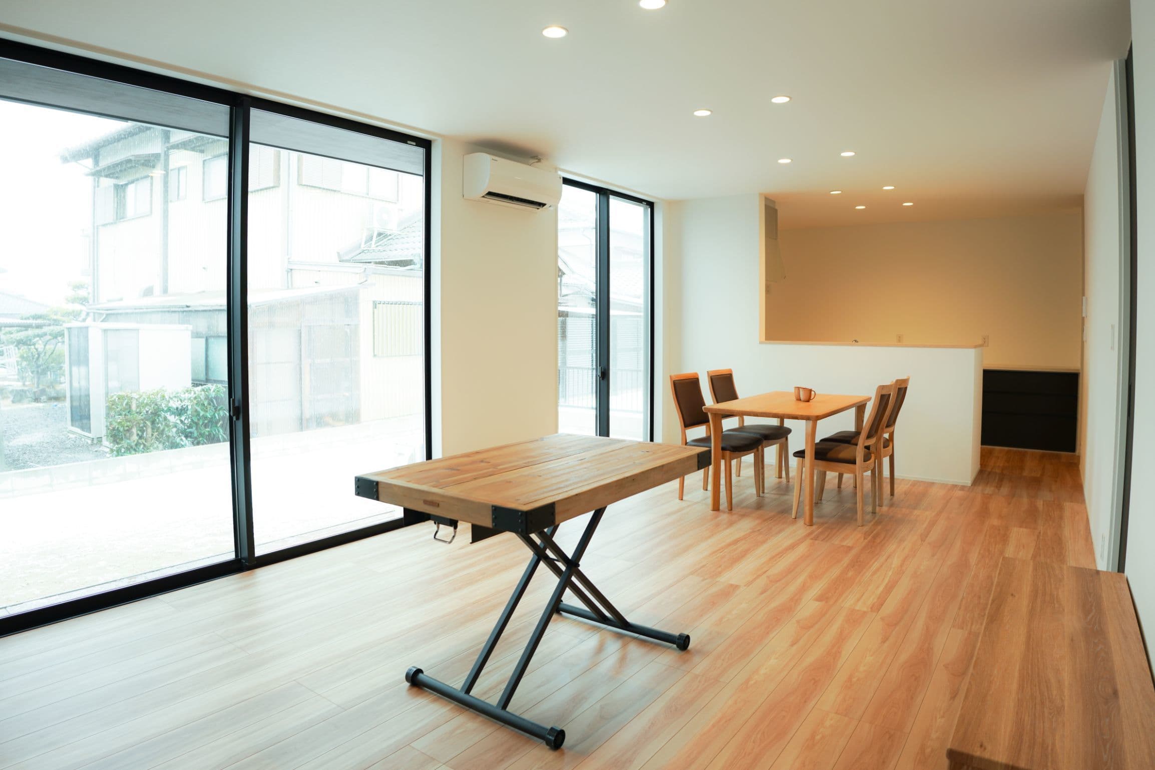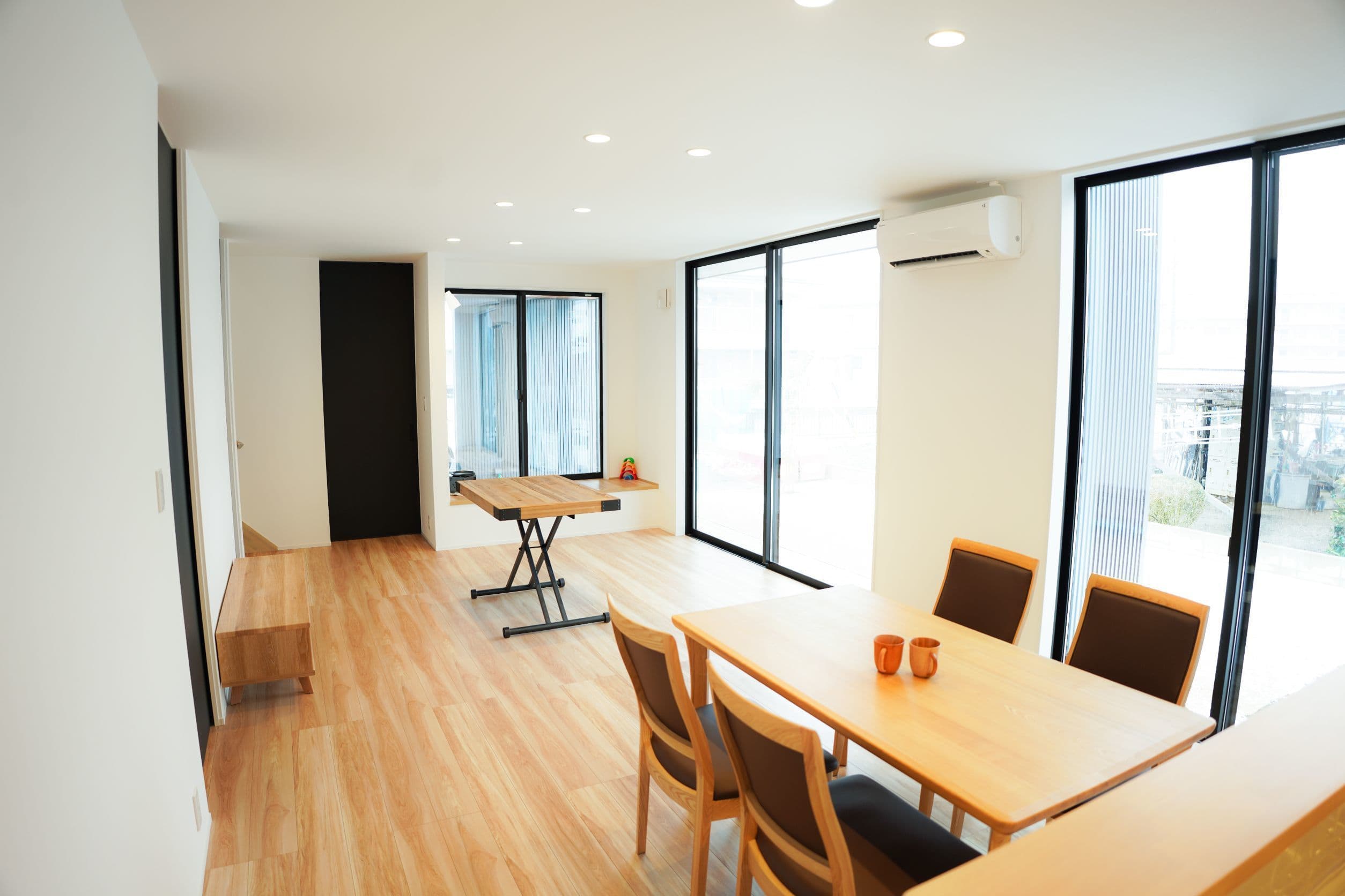 □の家 ✓見どころPOINT□【家族で過ごす時間】一直線のLDKで家族が繋がる□【自然を楽しむ時間】光や風、自然を感じられるウッドデッキ空間□【ON時間】集中できるテレワークスペース完備□リビングとウッドデッキ空間をつなぐ、家族団らんの場となる「ヌック」を採用 ALL 平屋 2階建て リノベーション 店舗 ALL 平屋 2階建て リノベーション 店舗