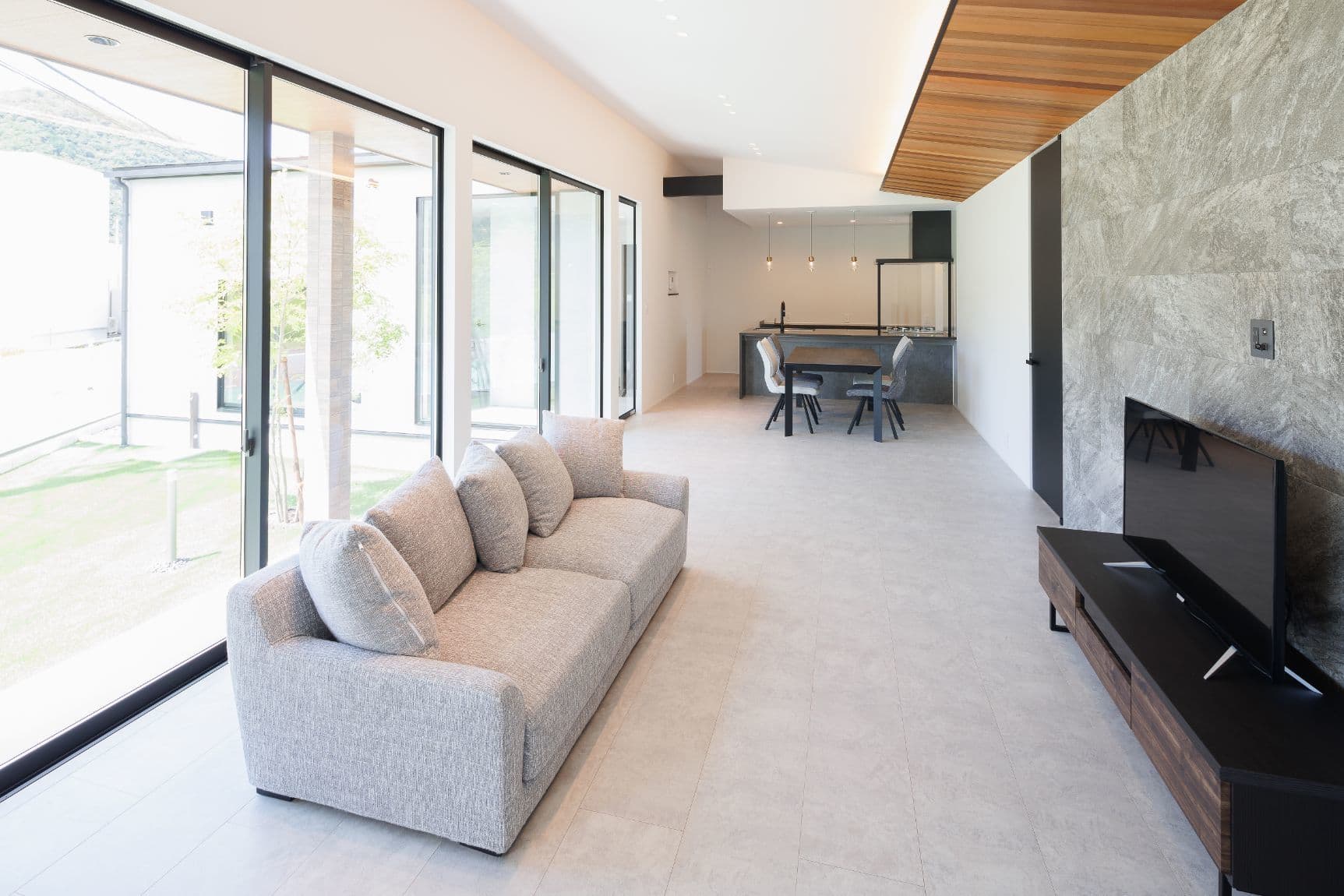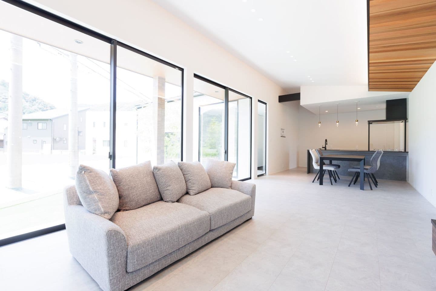 L型の家 ~30坪未満の平屋でも広い家~ ✓見どころPOINT □ 30坪未満の平屋でも広い家□ 子供の帰宅が分かる間取□23帖の広いLDK+勾配天井□子供の成長に応じて変更する間取□収納量たっぷりのシューズクローク□LDK間接照明の空間作り□奥様に嬉しい家事動線 ✓リニューアルPOINT □道路側にフェンスを設置し、プライベートを確保□カーテンとベッドを設置し、より生活のイメージ・サイズ感が分かるように