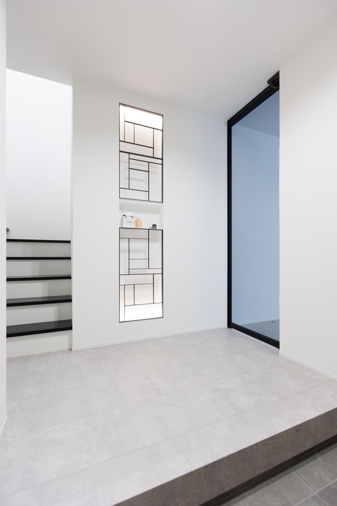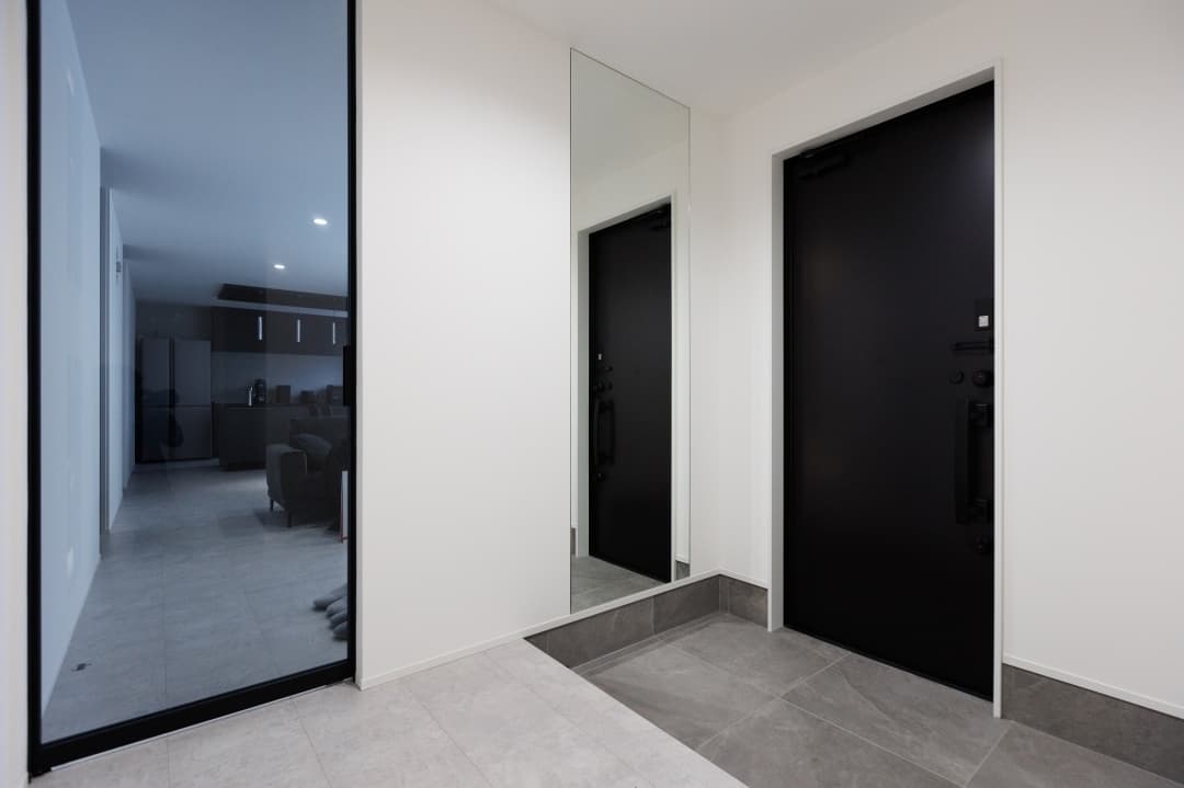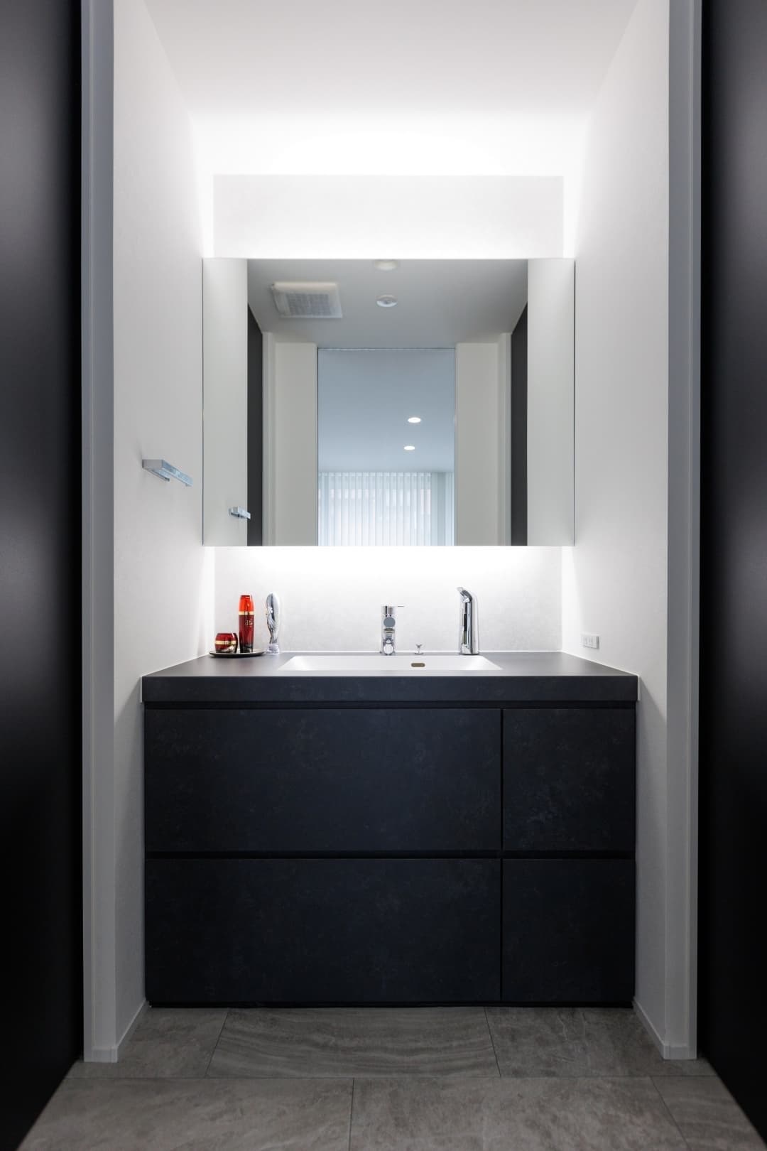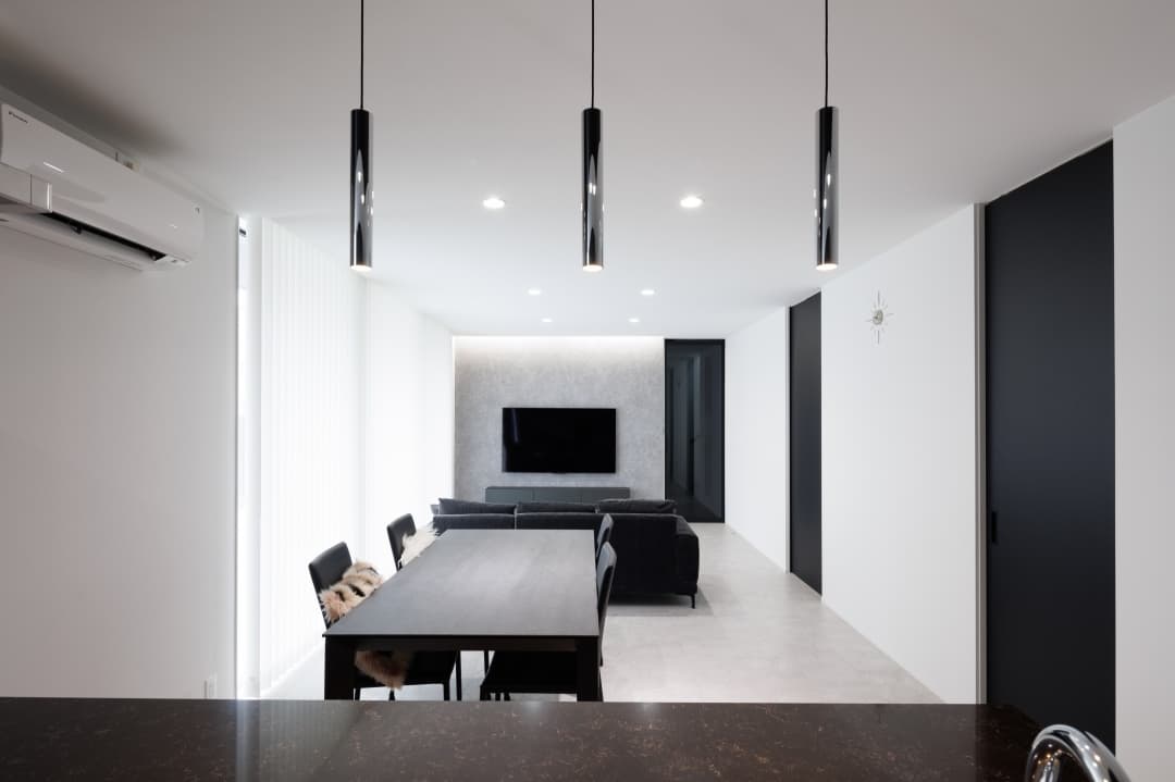 このモノトーンでホテルライクな家の内観デザインとインテリア設計は、洗練されたシンプルさとラグジュアリーな雰囲気が特徴です。壁や床、家具などの要素はモノトーンで統一され、モダンでクリーンな印象を与えます。照明は間接照明やダウンライトを活用し、空間に柔らかな光を演出しています。全体的に、モノトーンのシンプルさとホテルライクなラグジュアリー感が見事に融合し、居心地の良さと上質な生活空間を提供しています。