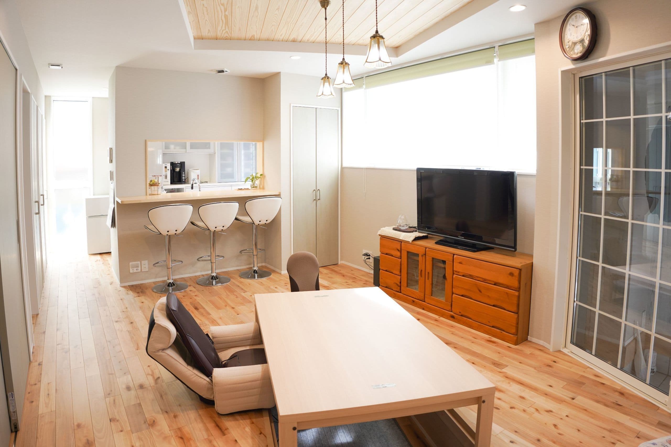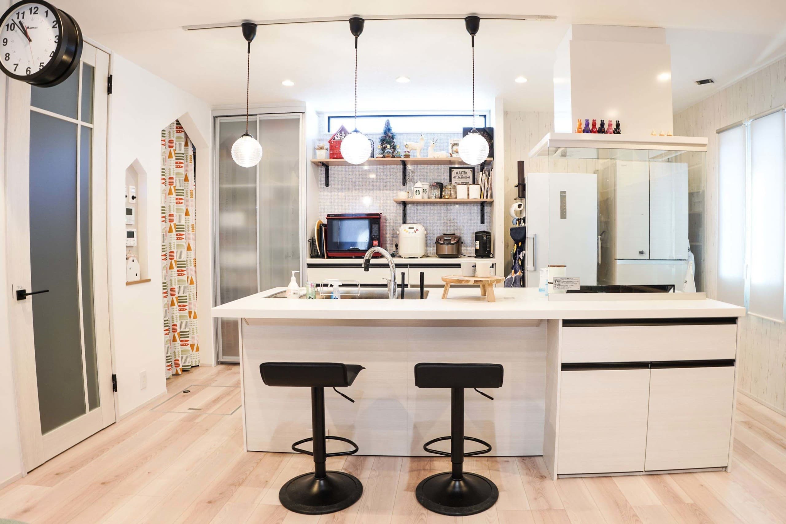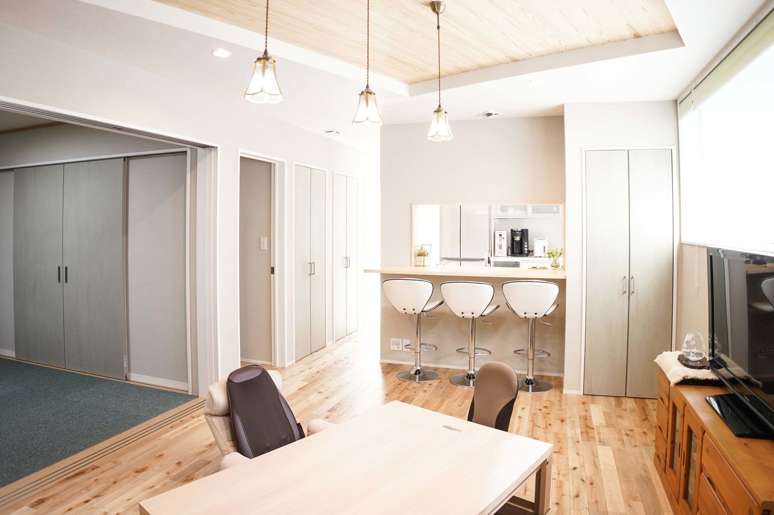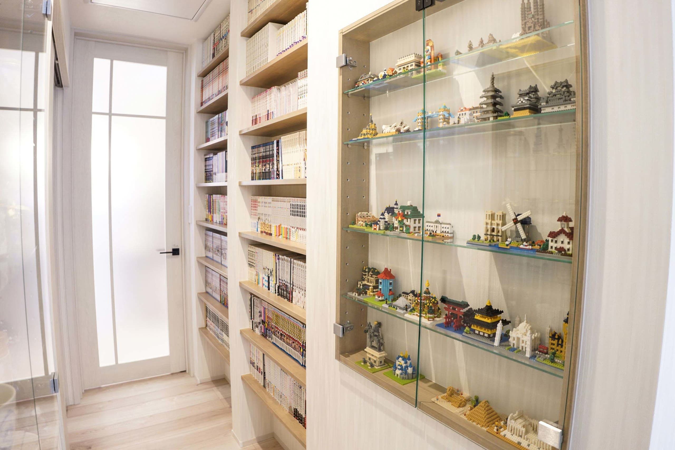 全館空調のある 2世帯住宅 2世帯住宅になるため上下階のそれぞれの生活が楽しくなるように、一緒にではなく、親世帯様、子世帯様がそれぞれの間取作成の相談を行いました。基本的な共有部分はなく、玄関扉から水廻りまで完全に上下階で分かれている間取です。親世帯様は、LDK部分に土間スペースを作り、ガラス扉で仕切り、犬と共に暮らせるようにしました。子世帯様は、趣味のガンプラを作成、ナノブロック、フィギュア、漫画などのサブカルチャーを飾れるようにスペースを考慮しました。 ALL 平屋 2階建て リノベーション 店舗 ALL 平屋 2階建て リノベーション 店舗