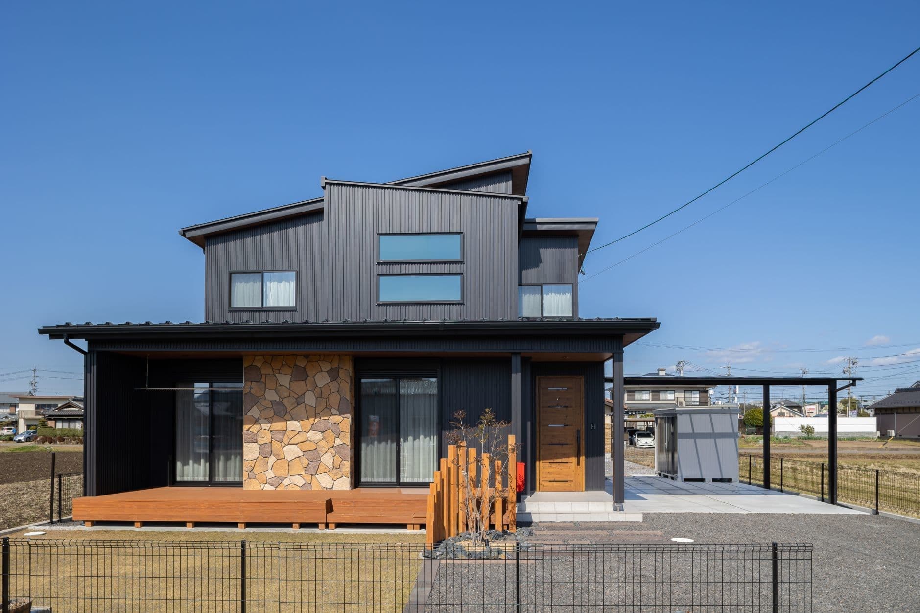 外観はガルバリウム鋼板のネイビーブラックを採用。