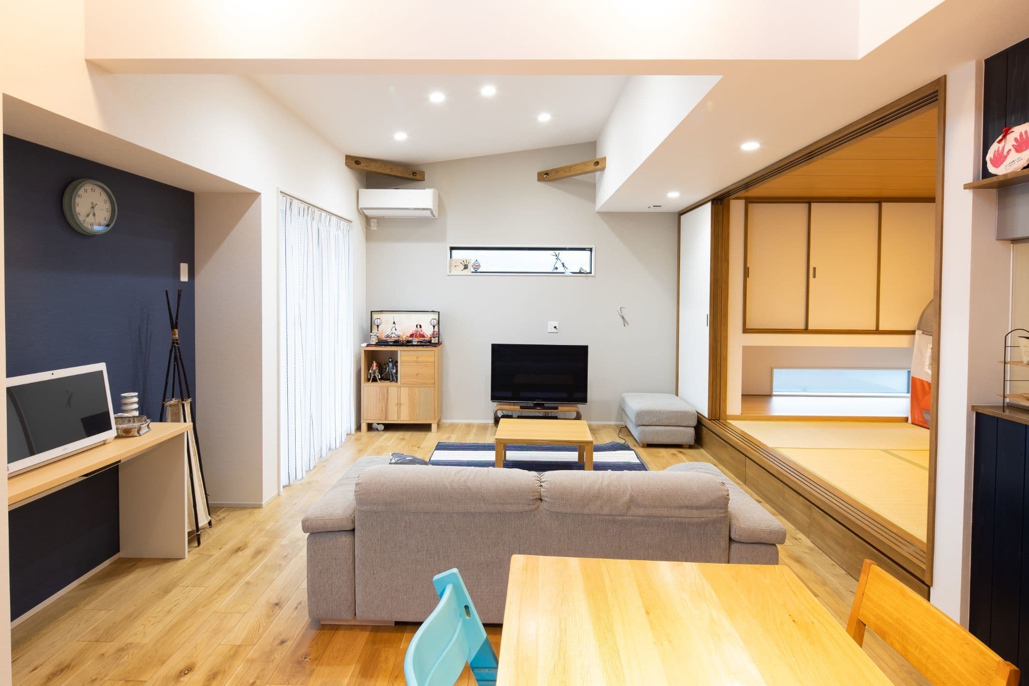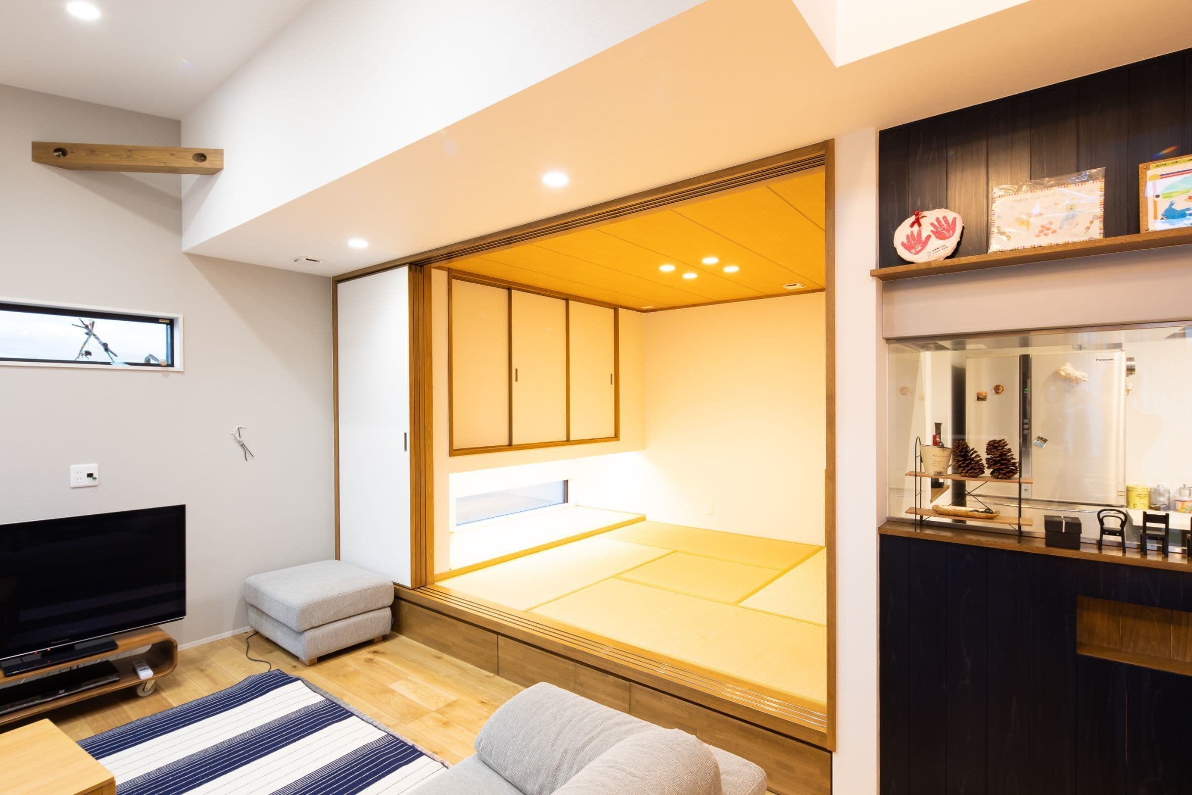 脱衣室と和室の間には小さなドアを設け、洗濯物を干す動線を確保しました。