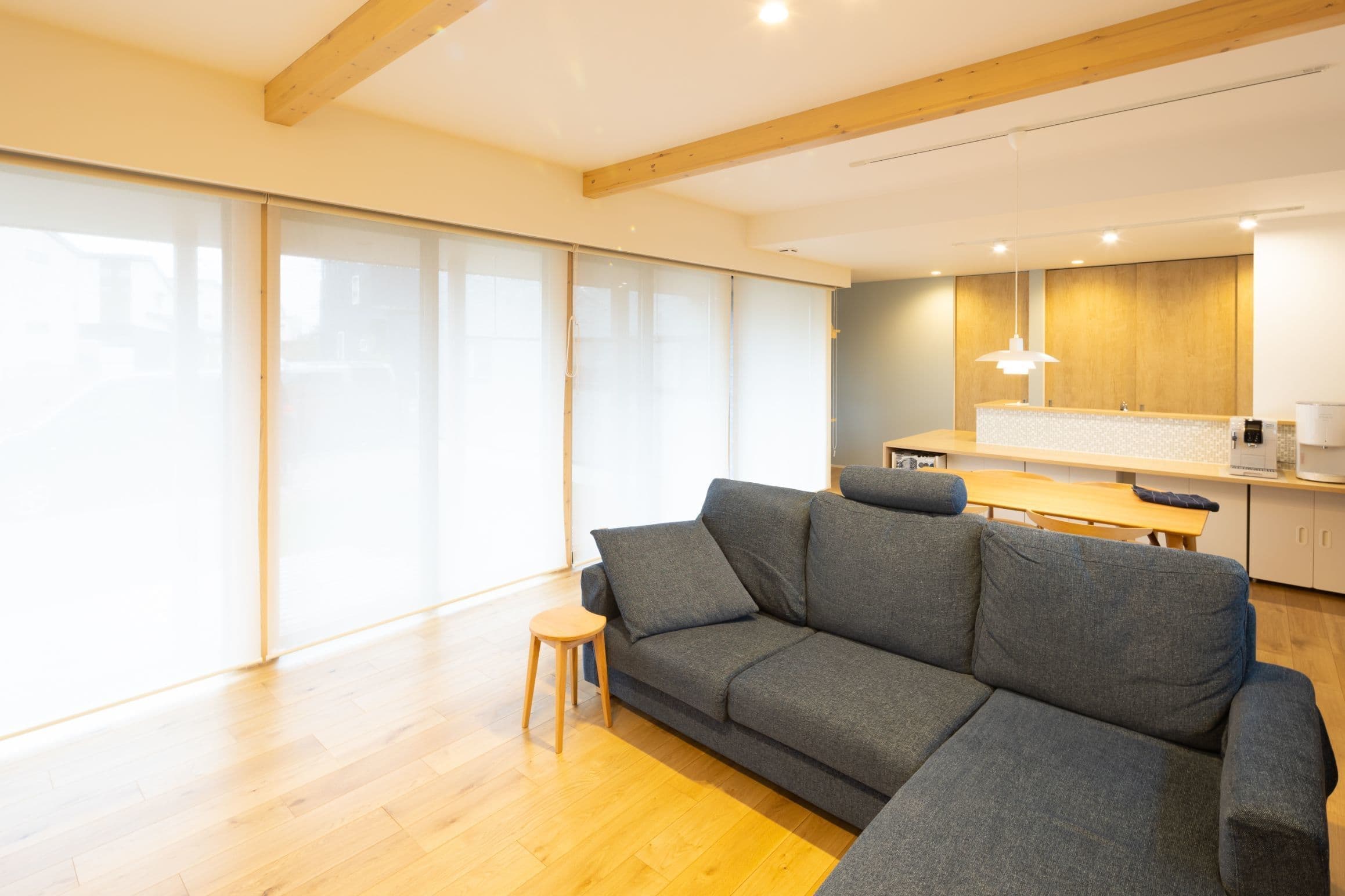 LDKを広くし、さらハイドアを使用して開放的な空間にしました。